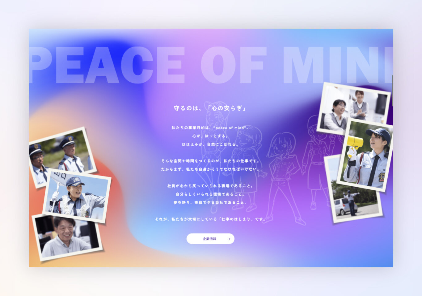 「安心は人の心から始まる(PEACE OF MIND)」という理念を体現するため、あえて定型的なトップページの枠組みを外し、読み手が企業の想いに触れるストーリー構成を採用しました。一般的な警備会社のイメージにとらわれない、全日警サービス長野様ならではの文化や誠実さが、スクロールを通して真っ直ぐに伝わるデザインに仕上げています。